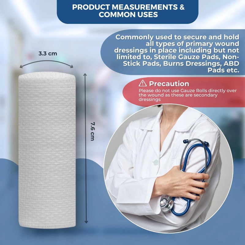 - User-Friendly: The elasticity and conformity of our medical gauze rolls allow timely first aid for oneself or their loved ones from the convenience of their home