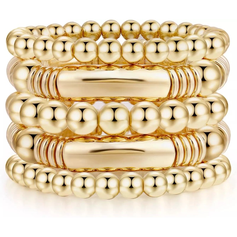 Does not apply Gold Bangle Bracelet for Women Chunky Curved Plated Stretchable Stacking Gift