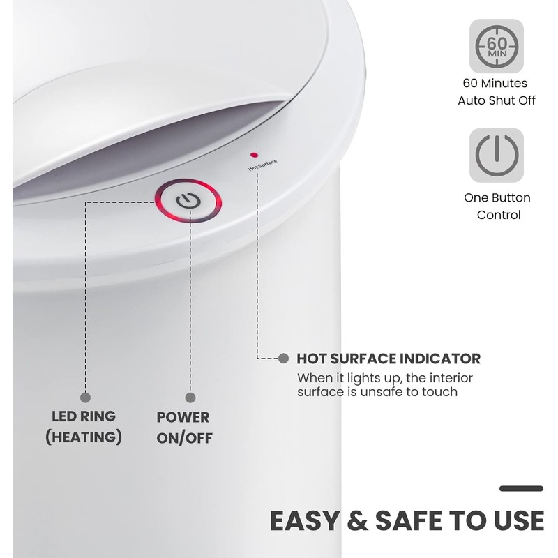 - 【Simple Operation & Auto Shut Off】: This towel warmer bucket is easy to use with single button control. A heating cycle lasts for 60 minutes and it will shut off automatically after the cycle is finished. So, there are no more worries about forgetting to turn off the towel warmer.