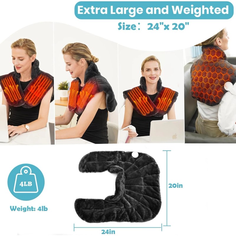 Heating Pad for Neck and Shoulders, Luxurious Faux Rabbit Fur Fabric, Extra Large 24"X 20", 2.2Lb Tourmaline Ball Weighted Heating Pad, 6 Heat Settings,2H Auto Off,Memory Function, Special Gifts