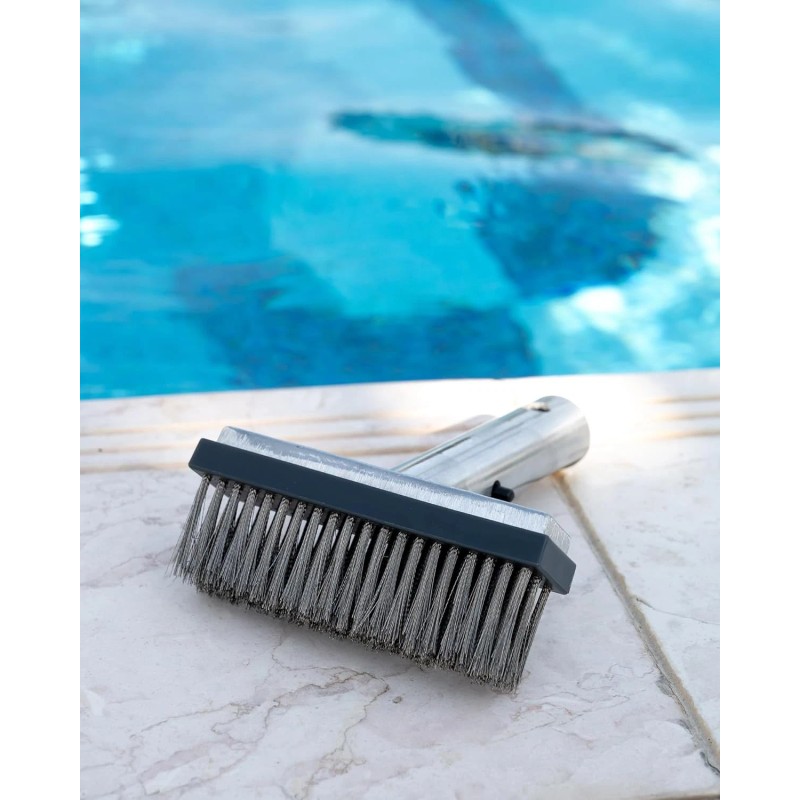 - βοΈπππππ ππππππ: The innovative pool scrubber brush features a durable body with aluminum handle and stainless-steel bristles that are ideal for cleaning hard-to-reach corners, steps, walls, ladders, hot tubs, pool perimeter and other problematic areas. Elevate your cleaning experience and use this tough little guy for heavy stains and dirt.