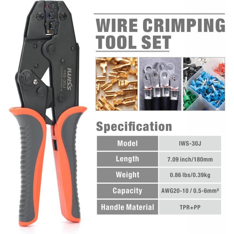 - Applications: IWS-30J crimp tool kit is ideal for wiring projects in automotive aftermarket, wire assembly, electrical maintenance.