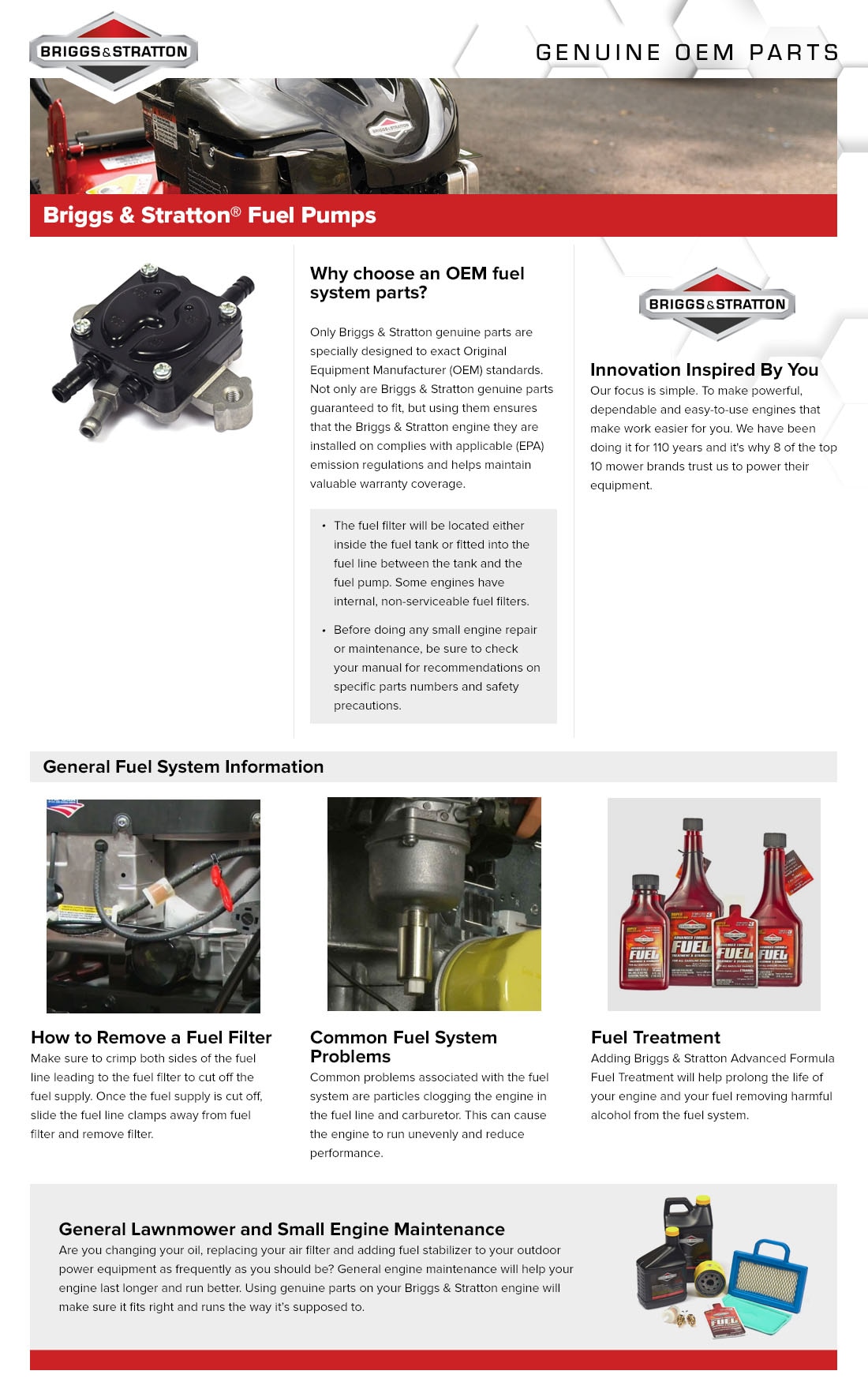 - Only Briggs & Stratton genuine parts are specially designed to exact OEM standards, manufactured and tested to help deliver optimum performance in Briggs & Stratton engines
