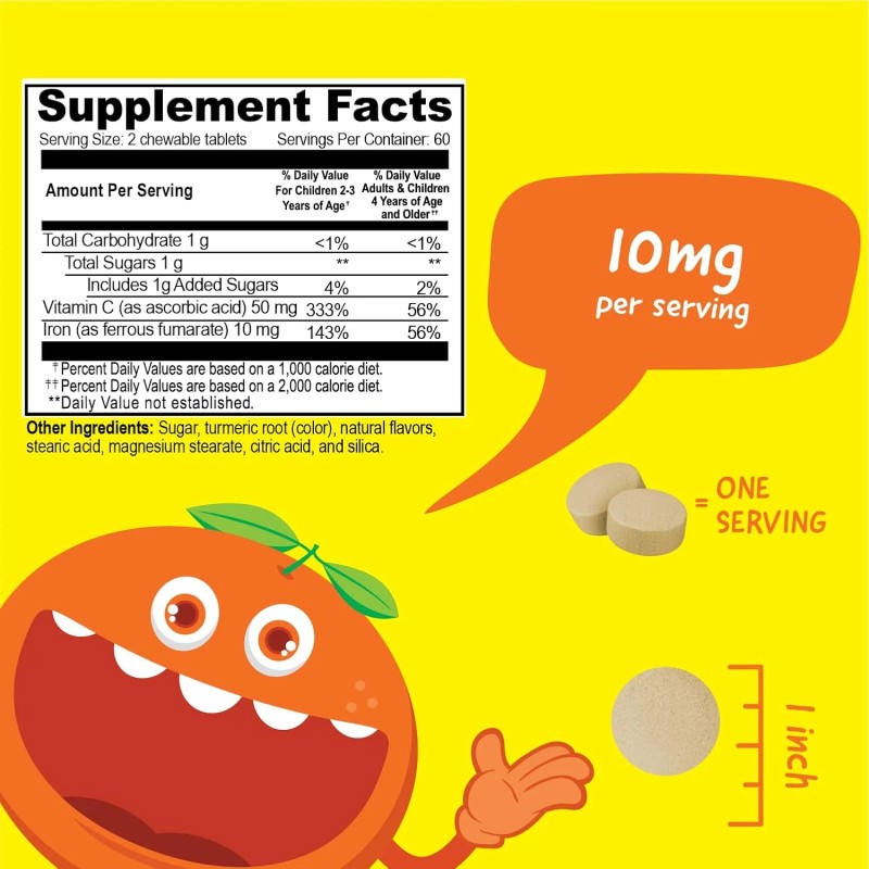 - GREAT TASTING ORANGE FLAVORED CHEWABLE: If your kids don’t want to take a pill, capsule, tablet, lozenge, injection, drops, liquid, sublingual, powder, softgel, or even gummies etc., VitaWorks Iron Supplement chewables have a fruity orange flavor everyone loves; they are pleasant and easy to chew and swallow; your kids will beg you for their daily dose of Kids iron vitamin c candy.