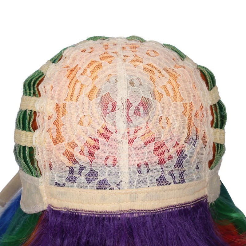 Lolita wig comes with a curly base wig and two matching ponytails. It is thick with matching ponytails designed along with the base wig to blend seamlessly. Be fun and fluffy in this delectable blend of multi color wig. We increased the size specially for fitting American female average head size. Heat resistant fiber looks natural and can be permed by iron.