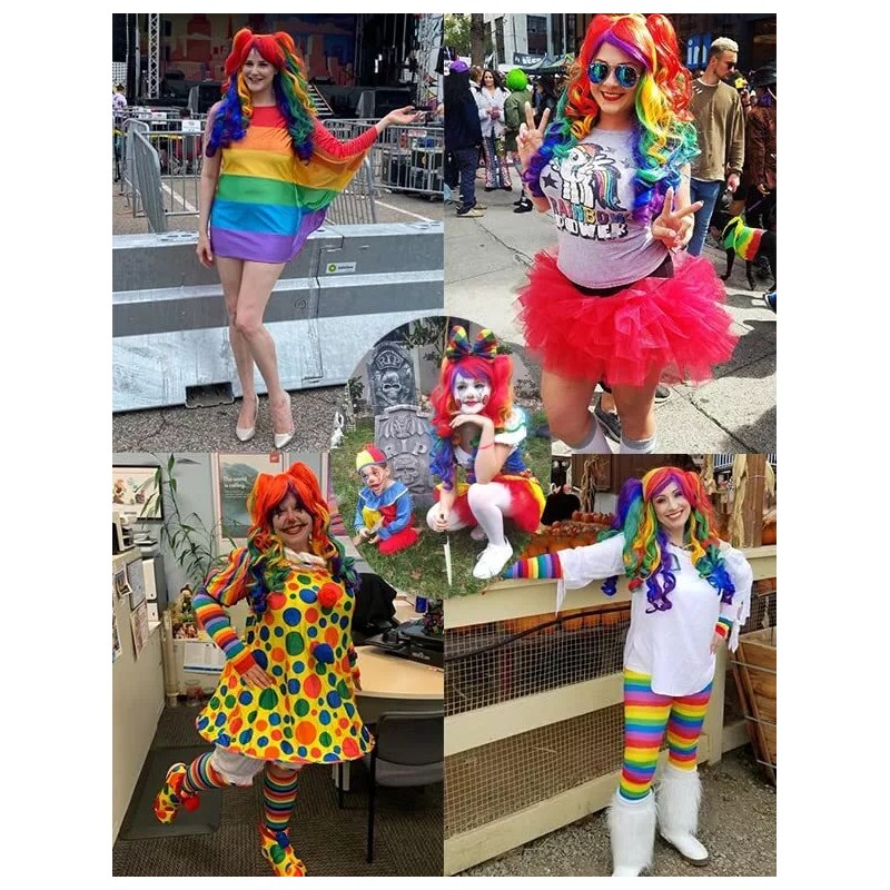 Long Curly Cosplay Wig with 2 Ponytails(Rainbow Color)