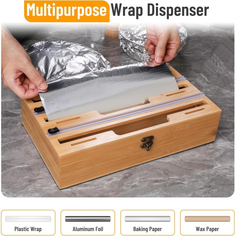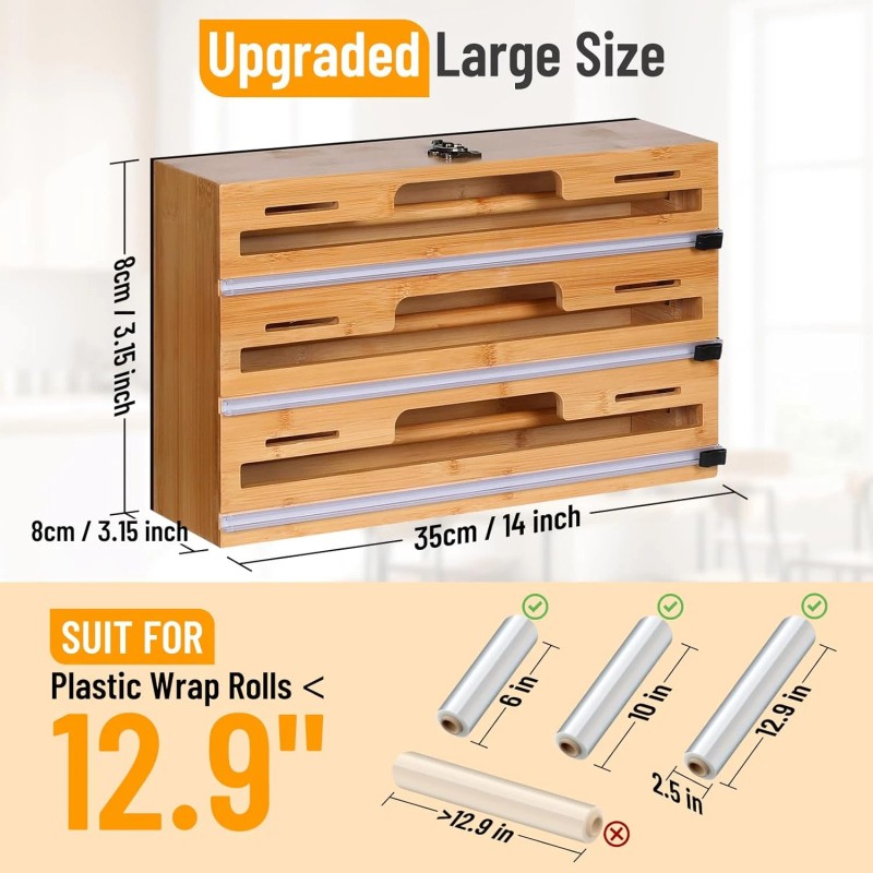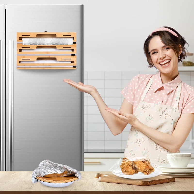 Does not apply Magnetic Plastic Wrap Dispenser with Cutter, 3 in 1 Refrigerator Bamboo Wood Org