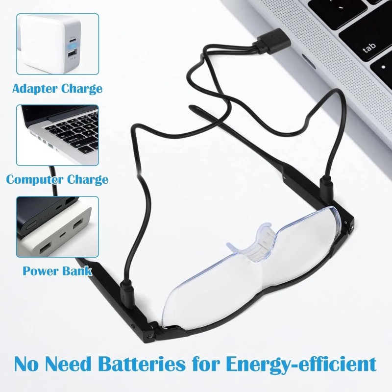 - [USB High-efficiency Rechargeable Battery] The magnifying glasses can be powered up with the included charging cable. You no longer need to buy batteries, which reduces weight and saves money and energy. Charging is quick and easy, and the glasses can be fully charged in just 1.5 hours.