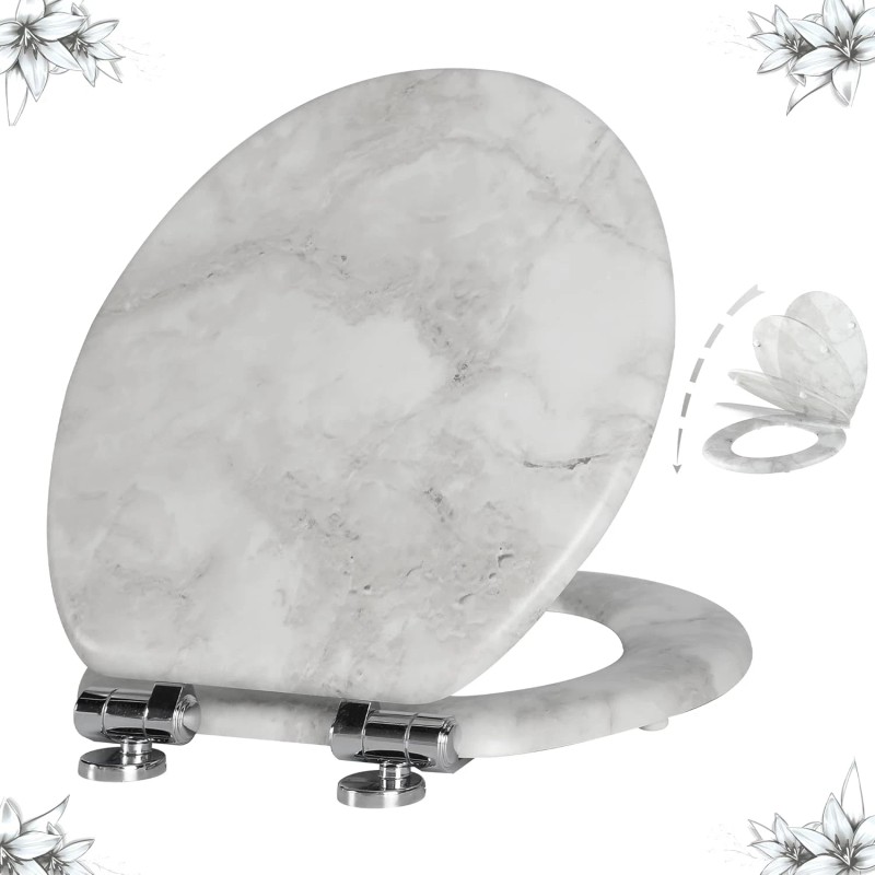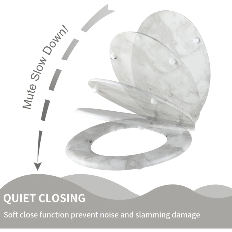 Does not apply Marble Toilet Seat Durable Molded Wood with Quiet Close,Easy Clean,Quick-Release