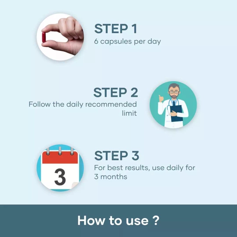- How to use: Take 4 capsules per day. Follow the daily recommended limit. For best results, use daily for 3 months
