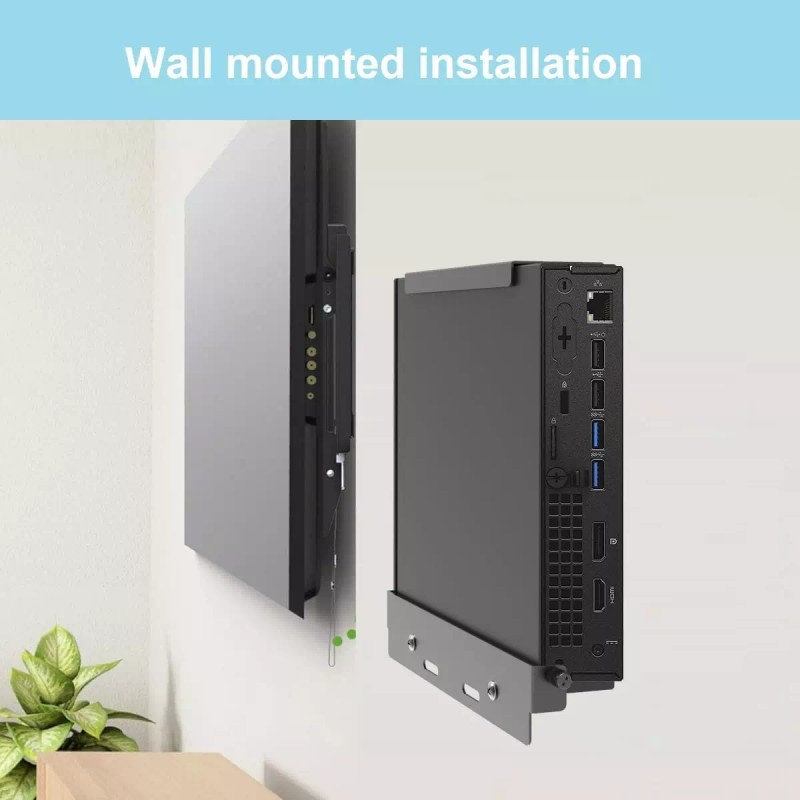 Besides mounted on a wall or under desk, the wall mount for Dell micro can be mounted on the back of computer or monitor with a 75 x 75 mm or 100 x 100 mm VESA patterns.