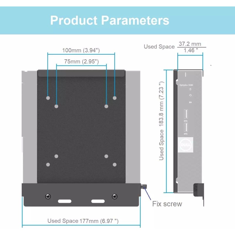 - Compatible to: Mount Usage space: W 6.97" x H 7.23" x D 1.46", Fits Dell OptiPlex Micro Form Factor Case 3000 MFF , 3040 MFF, 3046 MFF, 3050 MFF, 3060 MFF, 3070 MFF, 3080 MFF, 5000 MFF, 5050 MFF, 5060 MFF, 5070 MFF , 5090 MFF, 7000 MFF, 7040 MFF, 7050 MFF, 7060 MFF, 7070 MFF, 7080 MFF, 7090 MFF and more. Doesn't fit OptiPlex mini tower, Wyse models or small form factor.