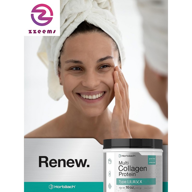 What is Collagen Protein?Collagen is the main structural protein in the body and a vital building block for nutrition. With a strong presence in hair, skin, nails and joints of men and women, Collagen has become the most popular ingredient in Beauty Products.* There are at least 16 types of collagen but roughly 80-90% of the Collagen in the body consists of type 1, 2 and 3. These Collagen types are found naturally in many food sources and added to nutritional supplements. | How to get Collagen Protein:There are a variety of supplement brands that carry Collagen products in different forms. The most common include: Vitamins, Pills, Capsules, Liquid, Gummies, Bulk Powder, Tablets, Moisturizers, Serums and more. Though, the more professional supplement brands use high quality innovation to create Hydrolyzed Collagen products. In addition, they contain a wider spectrum of Collagen for balanced support. | About Multi Collagen Protein:Horbaach has used years of industry experience to craft a super Multi Collagen Protein Powder. Our premium formula contains a deep profile of vital nutrients with 5 types of Collagen Peptides sourced from real whole foods. This includes Fish, Chicken, Bovine and Eggshell Membrane Collagen. Our Multi-Collagen powder is unflavored making it perfect for any coffee, drink, shake or baking recipe. Also, it's Non-GMO, Gluten Free, Dairy Free and Soy Free. Our ultra powder has officially raised the bar for Collagen Innovation. |