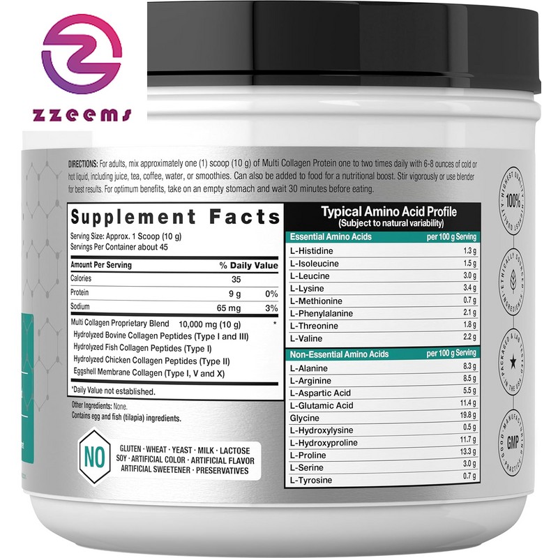 Multi Collagen Protein Powder 16 Oz | Type I, II, III, V, X | Hydrolyzed Collage