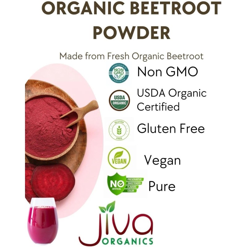 - Non-GMO & Vegan: Made with pure, plant-based ingredients, Jiva Organics Beet Root Powder is free from genetically modified organisms, preservatives, and animal products, making it suitable for all dietary preferences. Product of India.