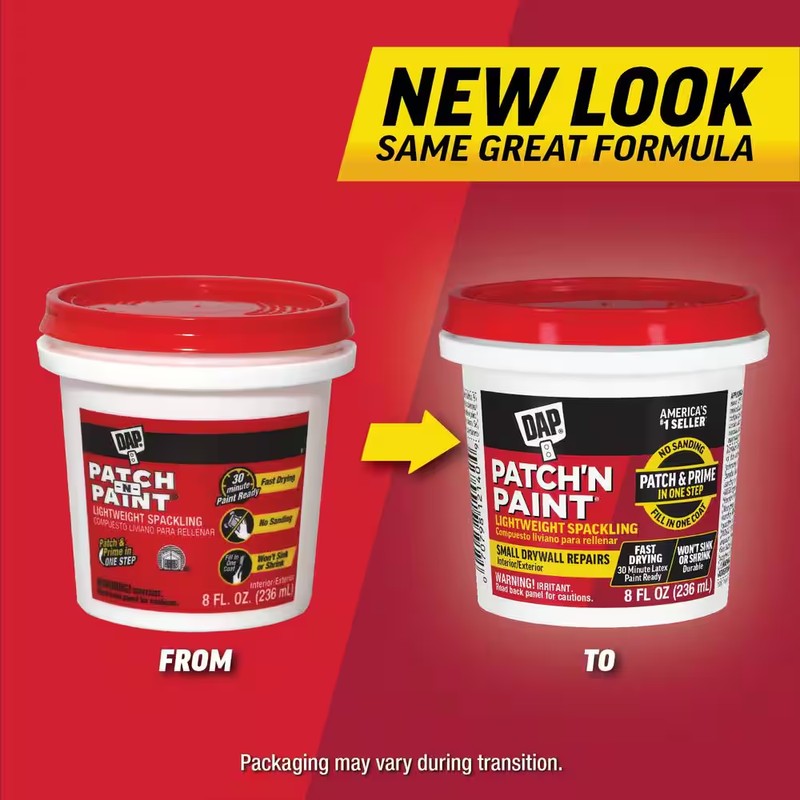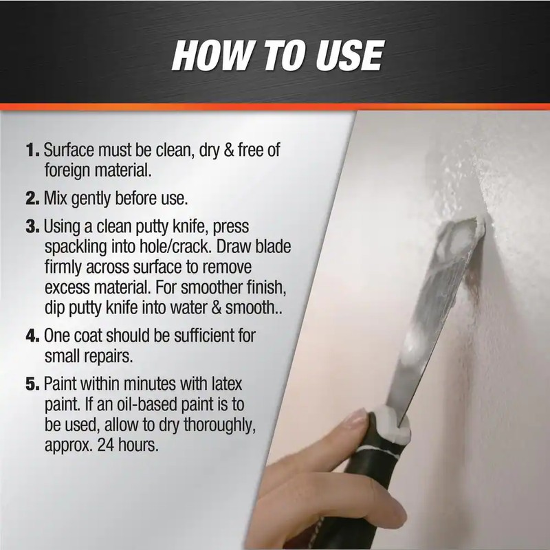 - Patch-N-Paint spackling dries fast; no need to sand or prime