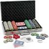 300 11.5 gram Las Vegas poker chips in an aluminum case. Also includes 2 decks of cards, 5 dice, a dealer button, and a set of keys to lock it.