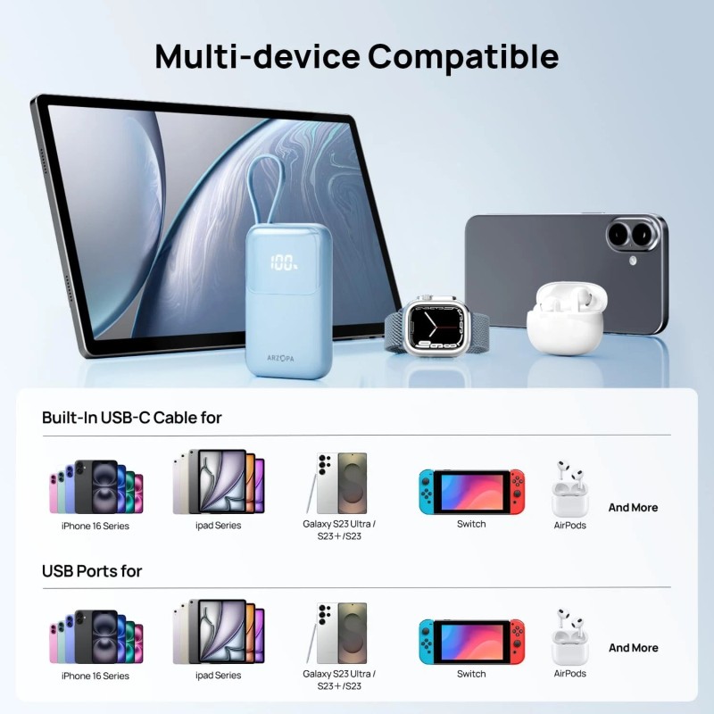 - Built-in USB-C Cable: This power bank comes equipped with a built - in USB - C cable, offering convenient and hassle - free charging for a wide variety of devices, including the latest smartphones and tablets