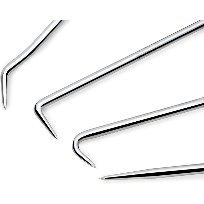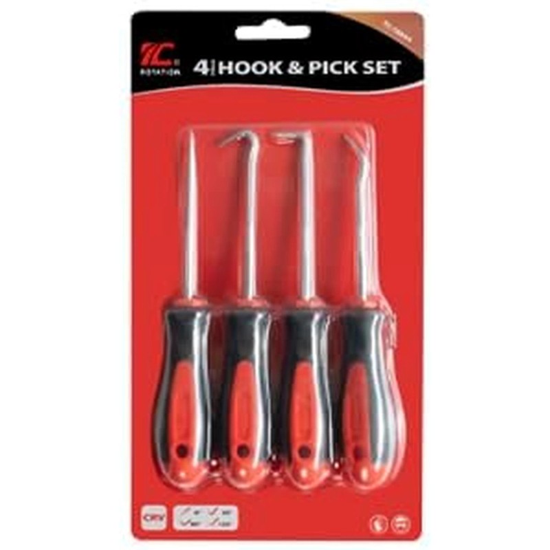 • Set includes: 90 degree pick, 45 degree hook, 135 degree combination pick, straight pick.