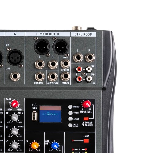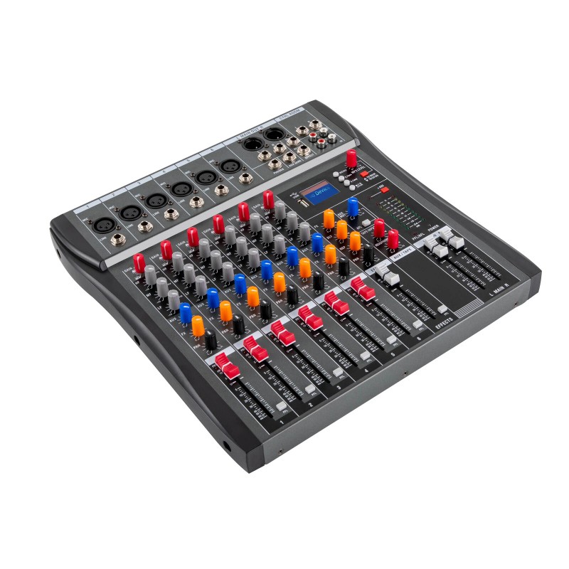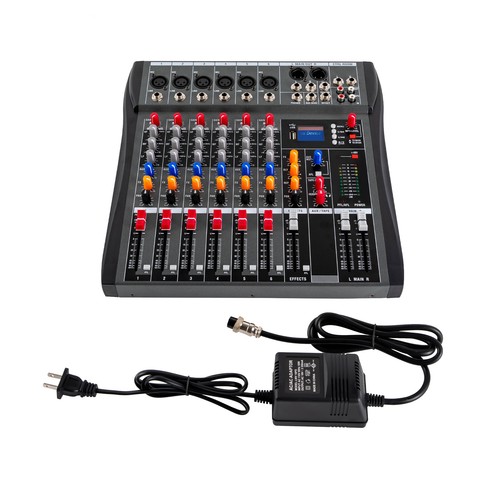 6-channel Professional mixer audio with MP3 Player+Bluetooth U disk Phantom Power Source USB recording, audio mixer with effects, dj mixer, RCA Input/Output for Professional and Beginner