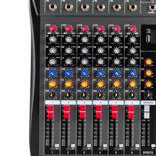 Multi-channel Input: The audio mixer is very suitable for the connection of multiple devices, as it has 6 channels and 1 group of stereo inputs. At the same time it fine processing various audio signals to achieve excellent sound.