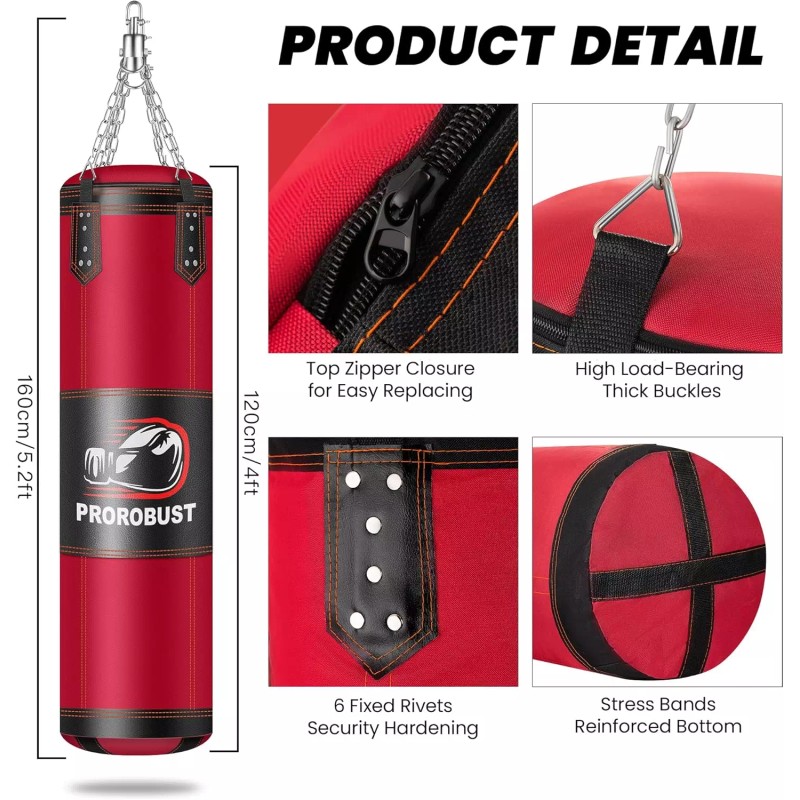 - 【Please note】Heavy punching bag comes unfilled, easy to carry and storage. You can fill it up with sawdust, sand, old cloth, shredded cotton fabric, sponge and more. But please don’t only install sand, the filling preferably no more than 50 pounds.