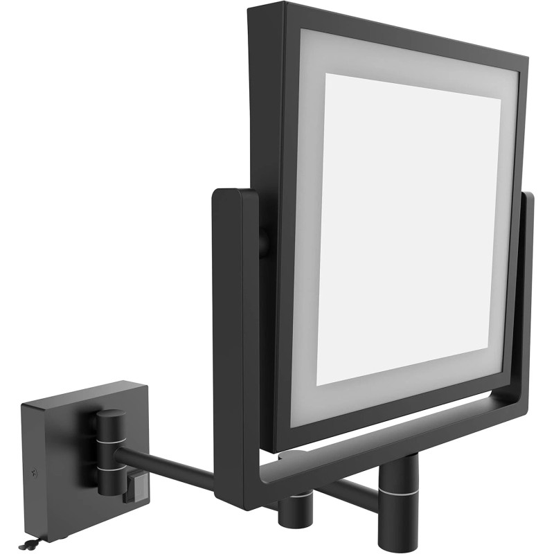 Rechargeable Makeup Mirror Matte Black Double Sided Vanity Mirror with Lights Square 1X/3X Magnification 8 Inch Led Magnifying Mirror Stainless Steel and Zinc Alloy Modern Wall Mounted