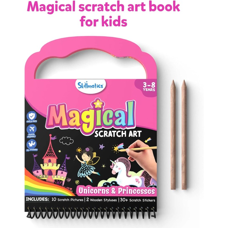 Scratch Art Book for Kids - Unicorns & Princesses, Craft Kits & Supplies, 30+ Scratch Stickers, Travel Toys, DIY Kit, Gifts for Girls & Boys Ages 3, 4, 5, 6, 7, 8