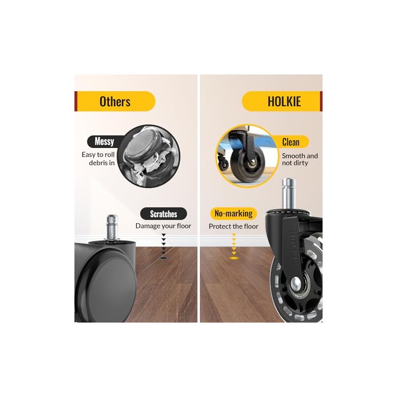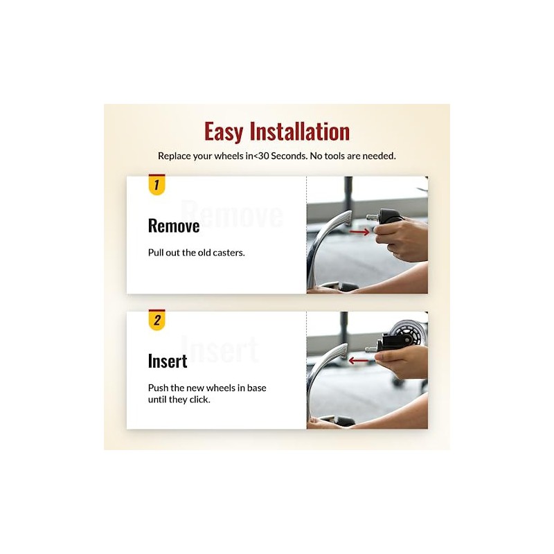 EASY INSTALLATION: Plug-and-play, no tools required! Simply pull out your old chair castors and insert the new ones. So you can start experiencing smooth and quiet gliding!