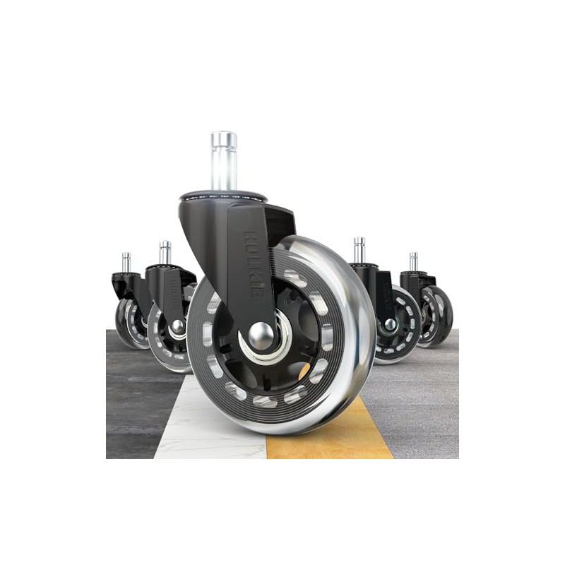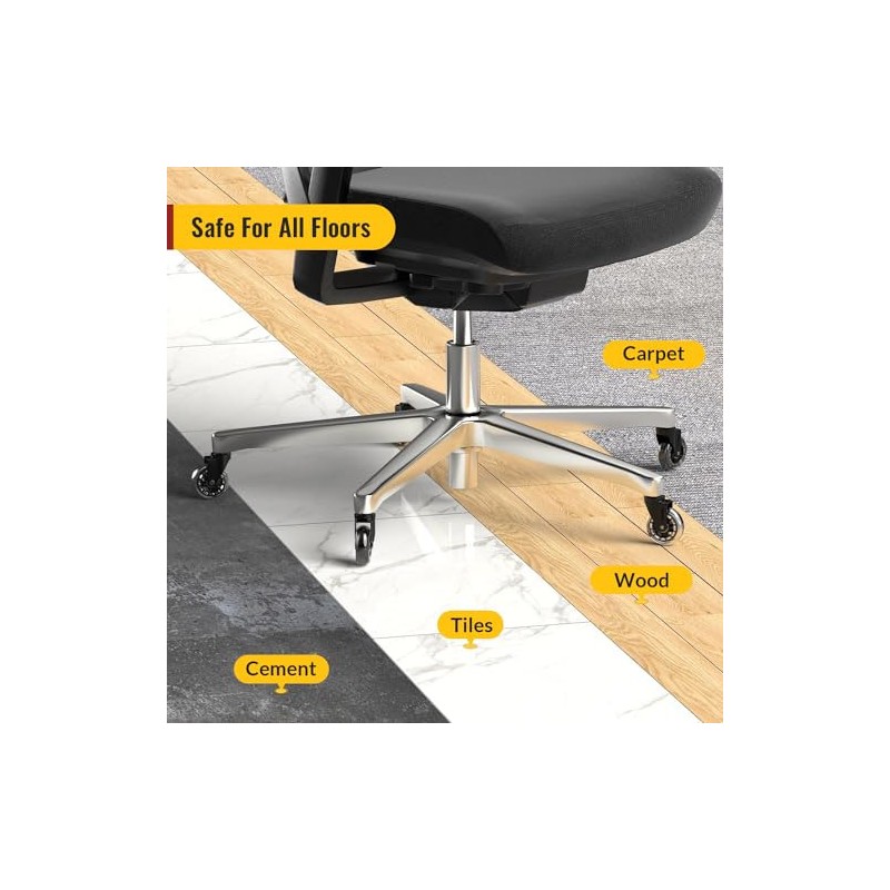 SAFE FOR ALL FLOORS: Covered with a high quality, extra thick, non-marking soft polyurethane layer office chair rollerblade wheels are avoiding to scratch or leave marks on any surface (including hardwood, carpet, tile, laminate and more).