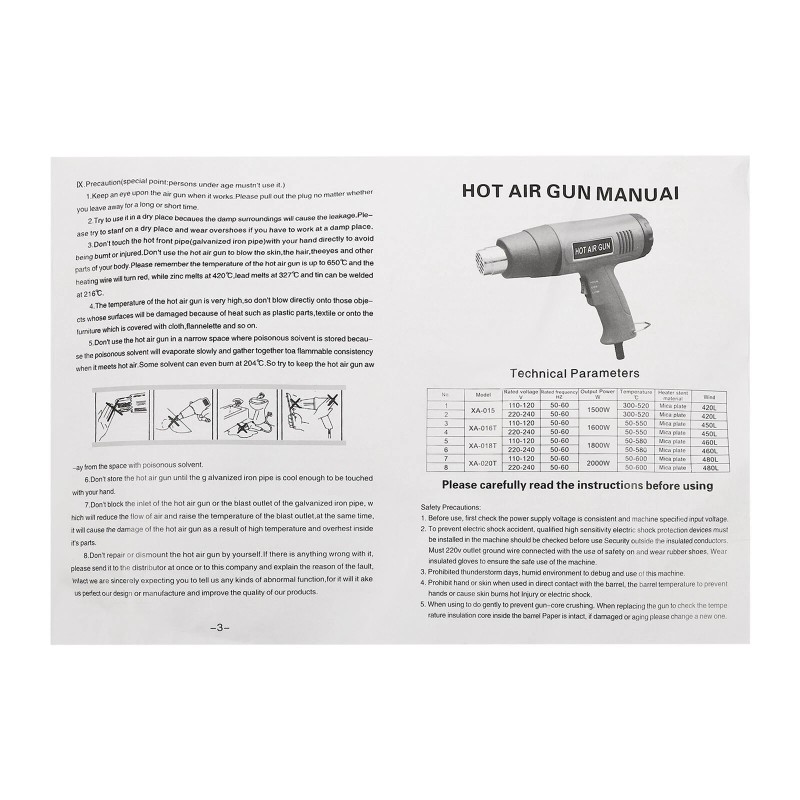- Heat Gun Temperature Range: 300-520℃/572-968℉