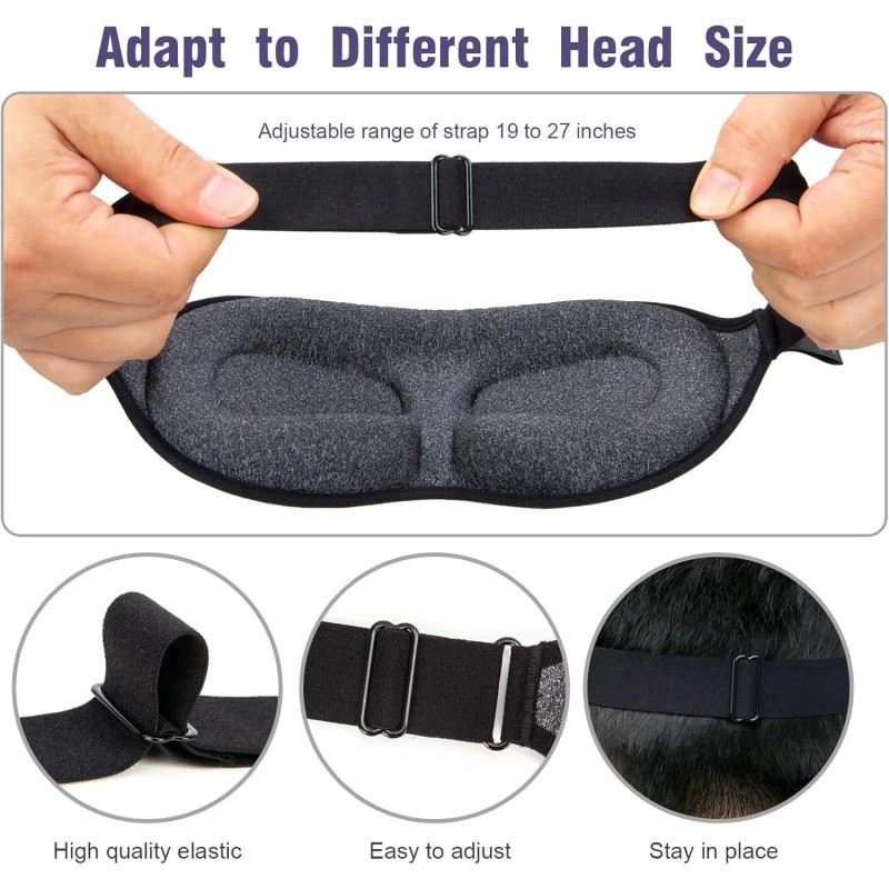 • Attention, Please: Everyone has a different head size and face shape. When adjusting the sleep mask, it's better to place the strap just above ears, or wear the band over ears. The specific position depends on the comfort and eye level.