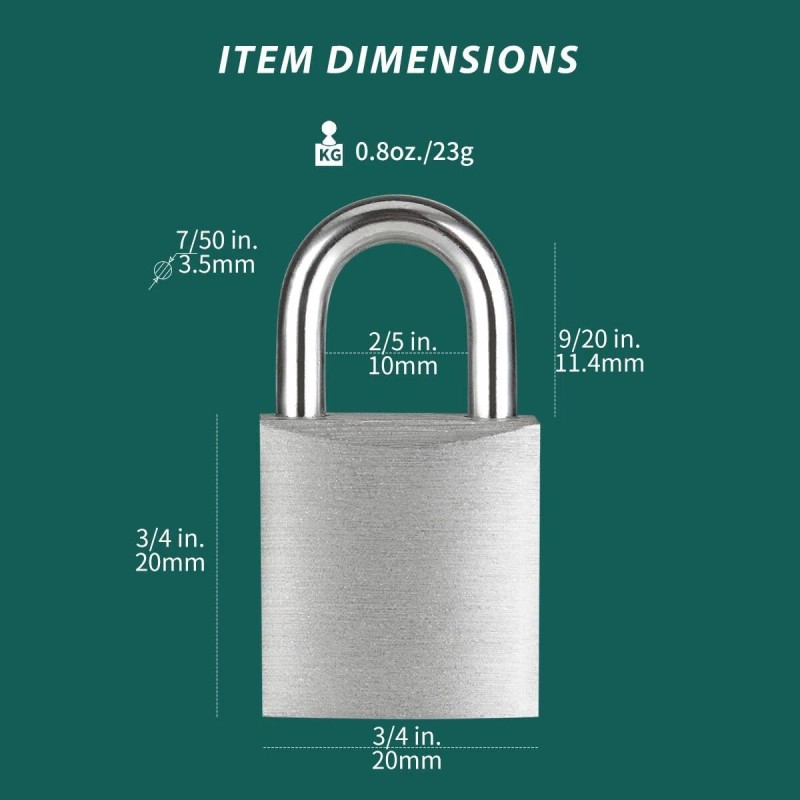 - Before purchasing, please ensure that the dimensions of this small lock, with a shackle width of only 2/5 in. and a shackle diameter of only 7/50 in., are suitable for the items you intend to lock.