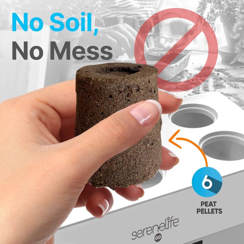 • COMPLETE ALL-IN-ONE KIT - The kit has a grow deck, light panel and post, base, tank, adapter, 6 planting baskets, 6 smart soils, 6 domes, 6 spacer lids, water level stick, nipper, and markers. Start your indoor garden journey with ease!