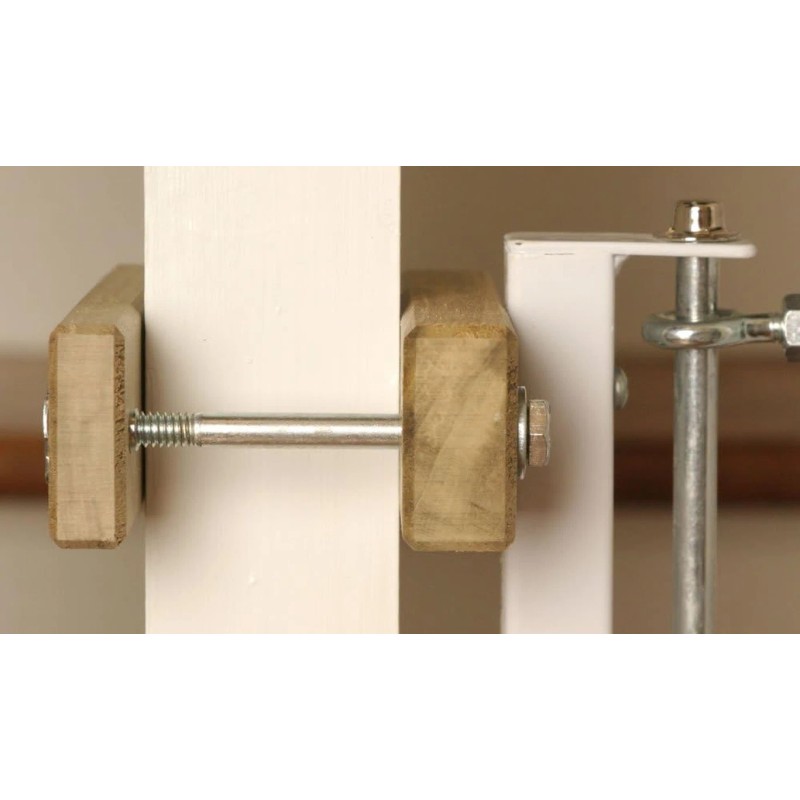 Cardinal Gates Square Clamps are an excellent option for mounting your safety gates. No need to drill holes or screw into your fine woodwork. Crafted from solid poplar, Cardinal Gates Square Clamps will work only with square posts and banisters (round clamps available, sold separately) to ensure proper, secure mounting of our safety gates. Post size must be 1 1/2 minimum to 3 3/4; maximum in width. Are your posts larger or smaller than this? No problem. You can purchase 1/4"-20 hex head bolts at any hardware store to use with these clamps. Typically, two clamps will be needed per side of gate. One clamp per pack; each sold separately. Cardinal Gates Square Clamps are unfinished wood—paint or stain to suit your décor. Made in the USA.