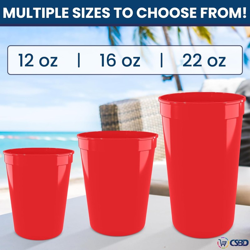 - Multipurpose Plastic Drink Cups – Crafted with high-quality plastic these nearly unbreakable tumblers come in 12 oz., 16 oz., 22 oz., and 32 oz. sizes for playing beer pong, keeping kids hydrated in the summer, or tailgating with friends.