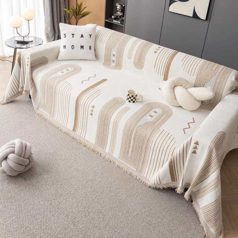 - Versatile Usage: Don't need an expensive budget, this stripe geometric jacquard sofa cover blanket with fringed edge is very pretty and elegant, could hide the breakage and old stubborn stains of sofa that give your sofa a totally new look. Chenille washable couch cover is easy to maintain your new sofa protect from pet scratching, child drawing, dander and daily stain