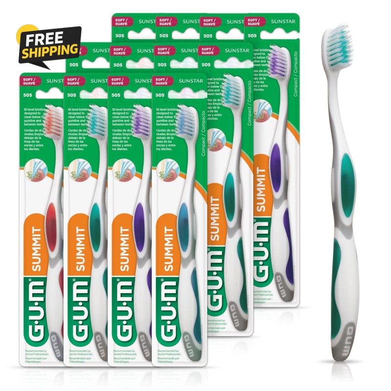 The Summit+ ultra soft toothbrush is clinically designed with unique tapered bristles for a deeper clean and your most sparkling smile yet. Each Summit+ ultra soft toothbrush comes with unique tapered bristles that can reach further below the line and between the teeth to remove plaque and food particles left behind by other toothbrushes. Paired with a bi-level bristle design, these truly unique bristles have been clinically proven to be 4x more effective at removing plaque from below the line and 6x more effective at removing plaque from along the line than traditional round bristles.* Our Summit+ manual toothbrushes come with a comfort grip handle that makes it easy to achieve perfect brushing technique. This revolutionary handle is designed with contours that help you intuitively hold the brush exactly the way most dental professionals do - at 45 degrees. Features : ● Tapered, bi-level bristles that offer superior plaque removal ● Ergonomic, comfort grip handle ● Compact head size ● Extra soft bristles that are safe for sensitive s and enamel *Yankell SL,Barnes CM, Xiuren Shi, Cwik J. Laboratory efficacy of three compact toothbrushes to reduce artificial plaque in hard to reach areas. Am J Dent 2011;24:195-199