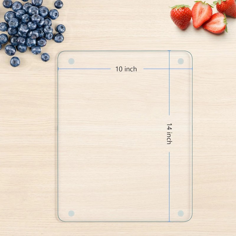 - Product Specification: 1pcs 10x14 inches, this glass cutting board meets all cutting needs. Whether you’re handling small or large ingredients, it performs effortlessly and is perfect for family gatherings