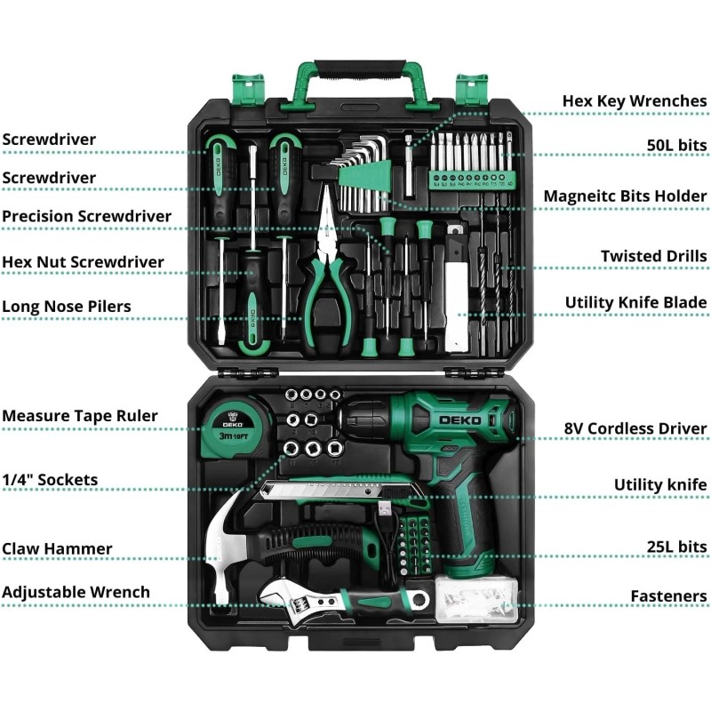 Does not apply Tool Kit: 8V Cordless Drill, Home Toolbox with storage case, Hand Tool set