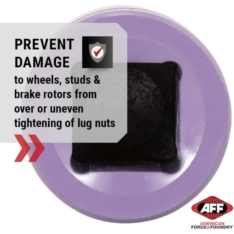 This socket prevents overtightening or uneven tightening of lug nuts. Limited Socket reduces risk of wheel and brake rotor damage. Socket stops turning once specified torque is achieved and absorbs any extra impact. Constructed with durable chrome molybdenum spring steel. Powder coated finish provides scratch and corrosion resistance. Size and torque rating are roll stamped on the drive end for easy identification. Established in 1963, American Forge and Foundry (American Forge & Foundry) has provided value through our selection of highest-quality, "forge tough" heavy-duty and automotive service equipment. From our extensive inventory of parts to the hundreds of service depots available nationwide our experienced team is committed to ensuring that the American Forge & Foundry brand stands for durability, safety, and customer care.