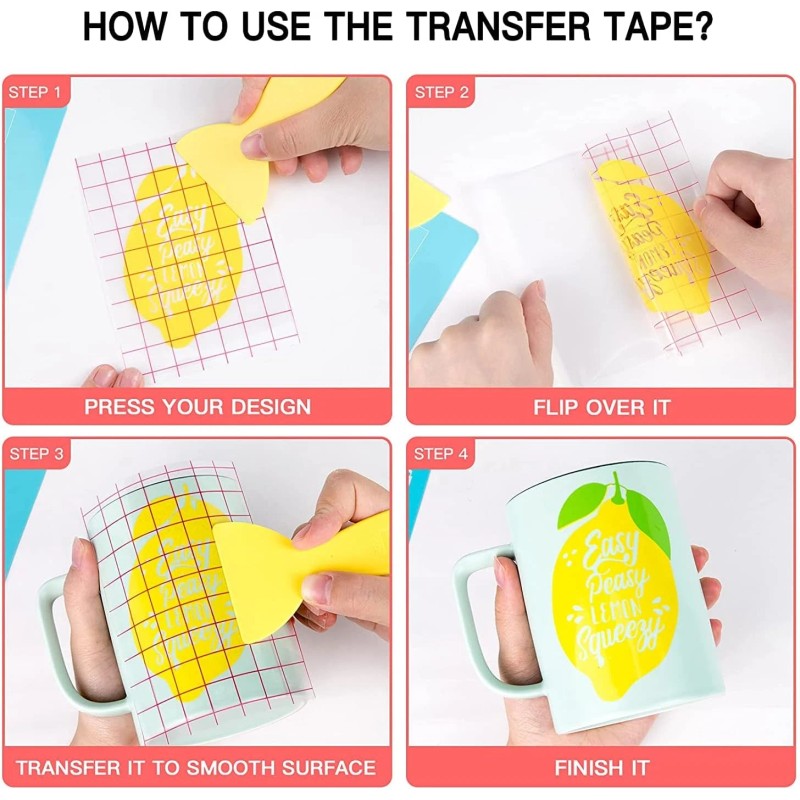 - 【GREAT SERVICE & FREE SCRAPER】:The free scraper along with the clear transfer tape for vinyl can make it easier for you to transfer your project. We have full confidence in our vinyl transfer paper, if you are not satisfied with our transfer paper, please feel free to contact us, we will try our best to solve your questions.