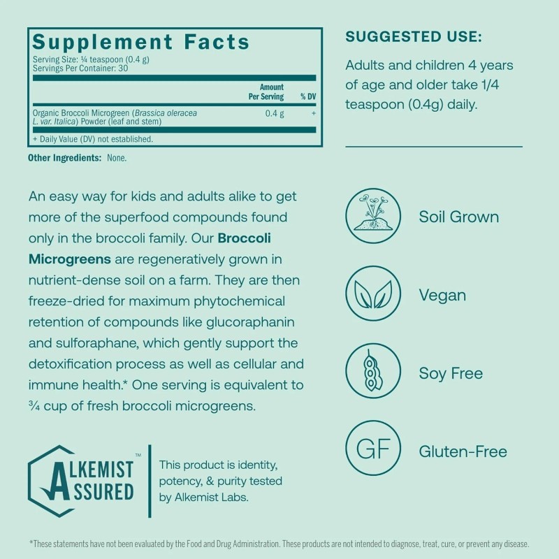 • SUPERFOOD POWDER - True Grace Broccoli Microgreens are an easy way for kids & adults alike to get more of the superfood compounds found only in the broccoli family—specifically glucoraphanin & sulforaphane, which support cellular and immune health