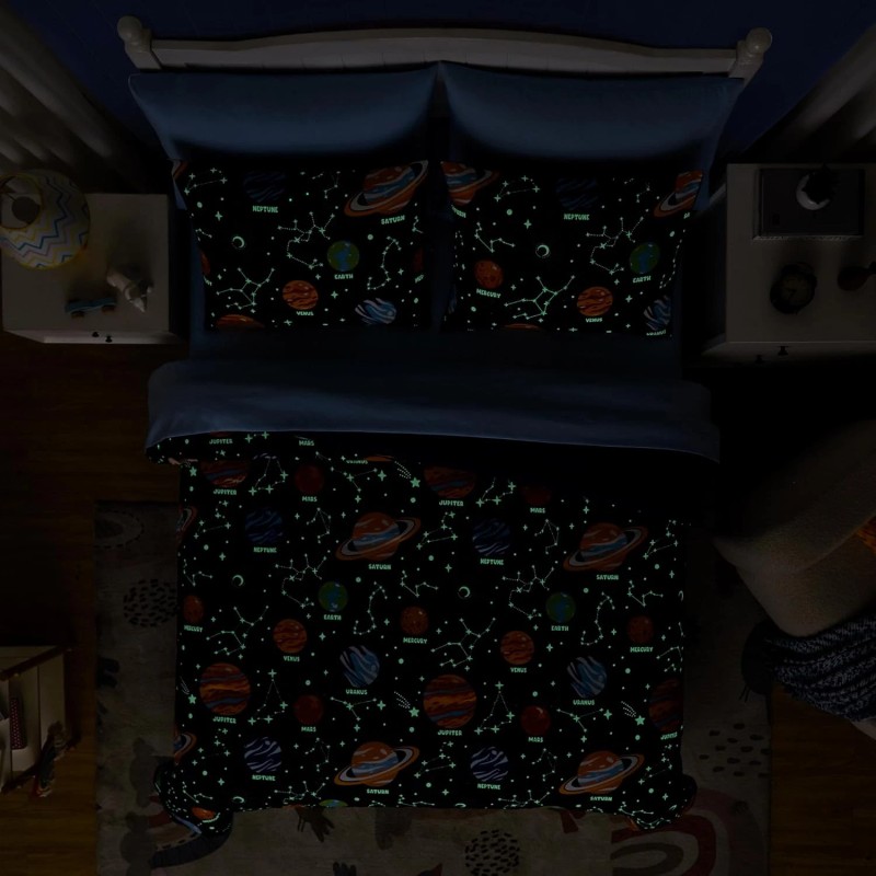 Twin Kids Comforter Set - 5 Pieces Twin Bedding Sets for Boys Girls Teen, Glow in the Dark Space Bed in a Bag with Sheets