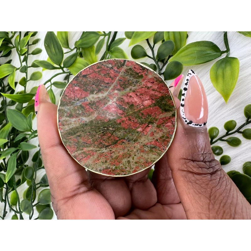 Does Not Apply Unakite Round Phone Grip - Unakite Circle Shaped Stone - 2" Unakite Round Phone