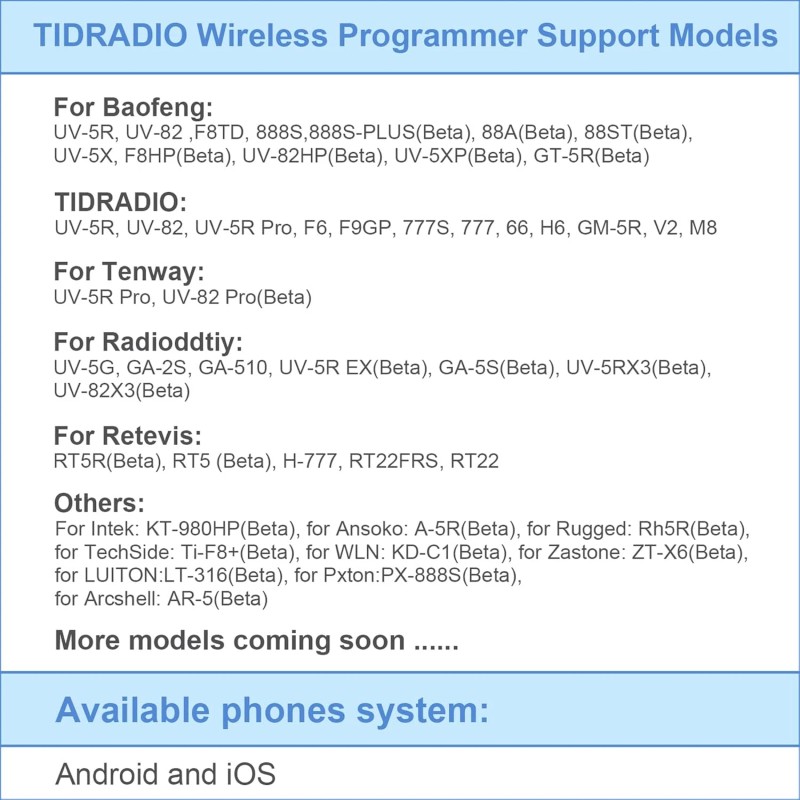 - ✅[Program on Your Phone] One click program your radio on your phone. No computer needed, no driver needed, no need to bother about which programming cable to use. Wireless programmer is also compatible with multiple radio models on the market, not only uv5r.