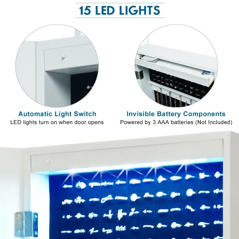Does not apply Wall Mounted Mirrored Jewelry Cabinet Organizer W/Led Lights