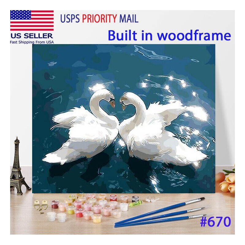 Wooden Framed DIY Oil Painting Paint by Number Kit for Adults kid Swans white
