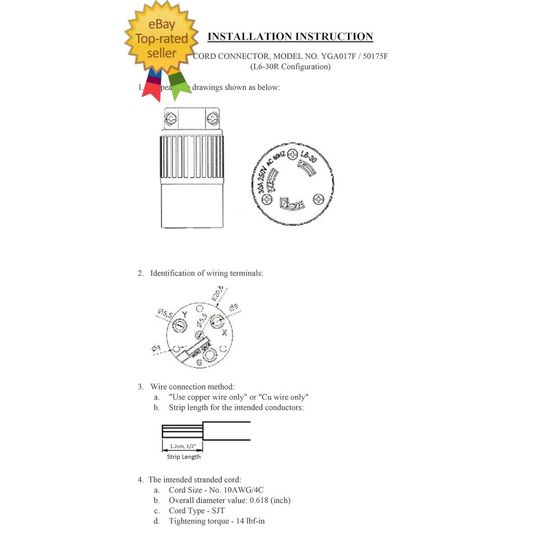 Does not apply YGA017-KIT 30 Amp 250 Volt Male Female Twist Lock 3 Wire Plug Nema L6-30P/30R (Y