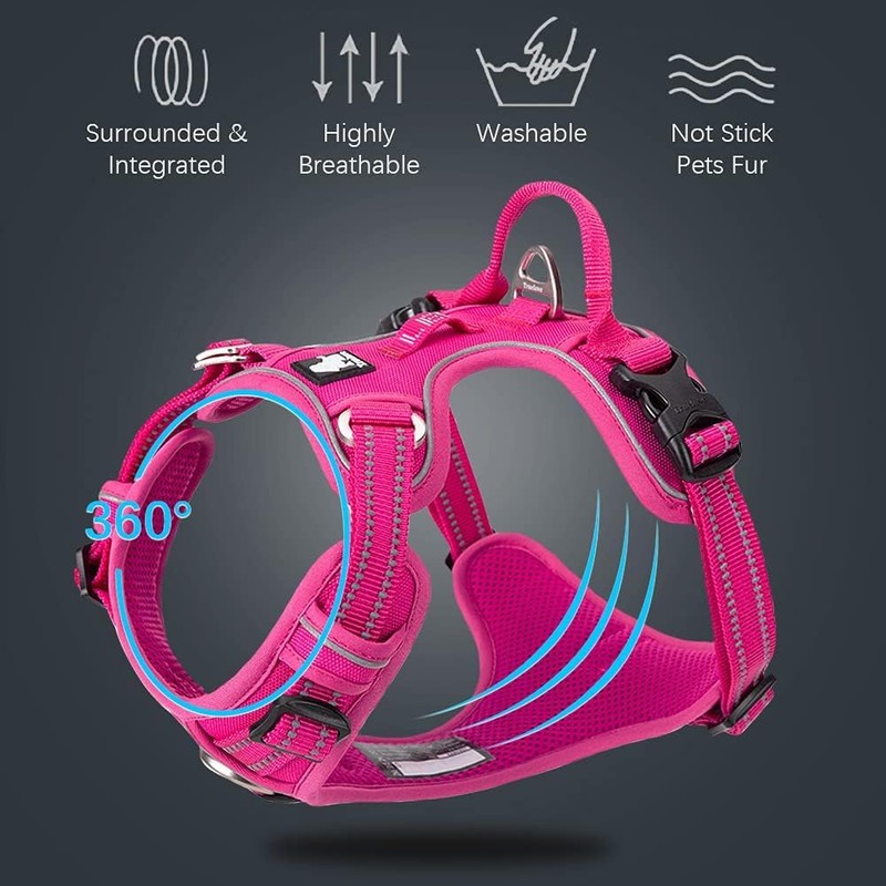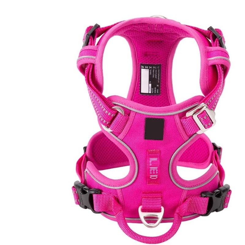 Dog Adjustable Harness, No Pull Dogs 3 Buckles Easy to Put on & Off Vest and Lead Set, Reflective No-Choke, Essential Pets Accessories for Training, Walking, Control Steps. (Pink, Large)